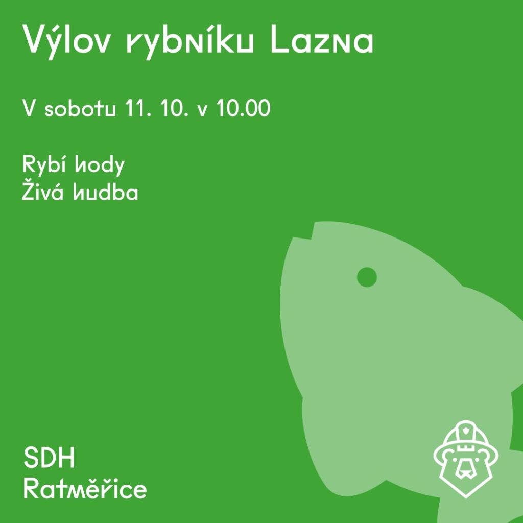 Tradiční výlov rybníku Lazna pořádaný SDH Ratměřice proběhne v sobotu 11. října od 10 hod. Těšit se můžeme na rybí dobroty a živou hudbu.